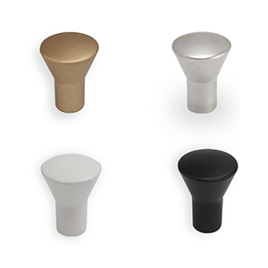 ידית מעוצבת בצורת כפתור, בגוון ניקל מט, זהב מט, שחור מט, לבן חומר:מזק קוטר 16 מ"מ, קוטר בסיס 8 מ"מ