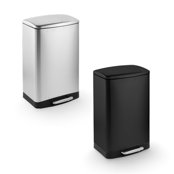 פח אשפה מלבני 50 ליטר, עם פדל וסגירה שקטה בשלושה צבעים קלאסיים בגימור עדין ויוקרתי. עבור מטבחים ומשרדים. לבחירתכם פח בגוון שחור מט וניקל מוברש.